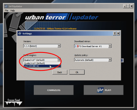 On Windows and Mac OSX the Urban Terror updater has the configurable option of choosing ioq3-m9 as the game engine (recommended, it looks great).