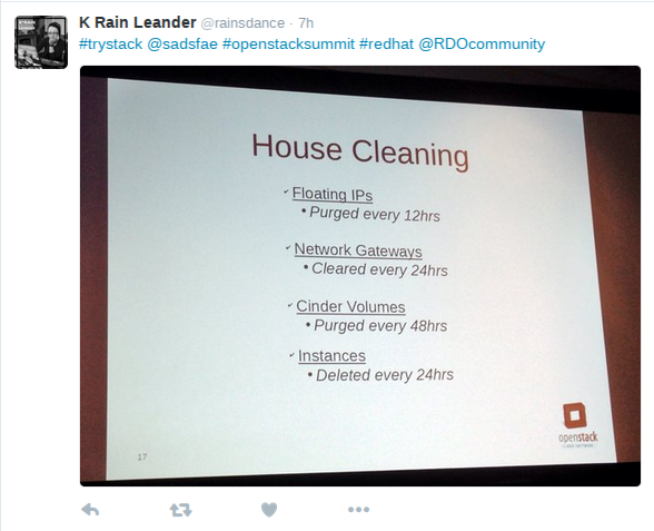 Following onto the previous Trystack.org talk at Devconf 2016, we presented at the 2016 Austin OpenStack Summit. Following the same format as the previous talk we covered some exciting updates around RDO Liberty/Mitaka, OpenStackID integration, datacenter hardware and network upgrades/expansion and lots of free OpenStack. Here’s a summary below, updated with resources and slides mentioned during the talk.