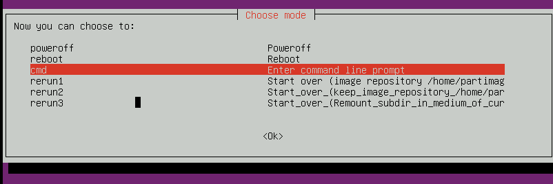 - Boot VM to Clonezilla LiveOS