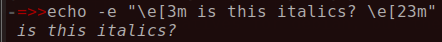 echo "export TERM=xterm-256color-italic" >> ~/.bashrc source !$