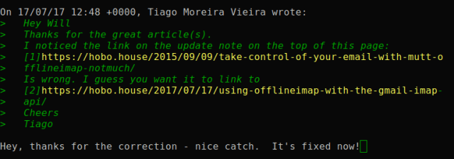 I wanted all code, system configuration file comments or in-line replies in neomutt email italicised to stand out easier. Many terminal emulators (xterm, xfce4-terminal, iterm2) don’t support [3m and [23m designators for italics but you can use a custom terminfo to do the trick. Here’s how to get it working.