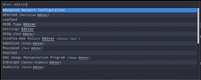 Right now I’m just using it as a quick, super-fast way to search and switch between open windows and applications so I’m not really using near full potential. Rofi, I can tell you and I are going to be great friends.