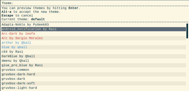 Rofi comes with all kinds of themes to compliment your desktop environment or window manager setup. You can run the following command to select one that works best for you.